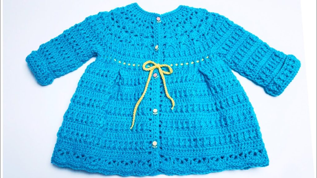 Welcome to our crochet blog, where we’re creating beautiful things for the little ones we love! Today’s project is a charming Sapphire Shells Baby Coat, a delightful, top-down crochet coat with a textured shell stitch bodice and a flowing skirt. This pattern is designed to be detailed and long, making it perfect for an intermediate beginner ready to tackle a special garment. The coat features a circular yoke, a textured body, and a sweet drawstring waist with a decorative accent.