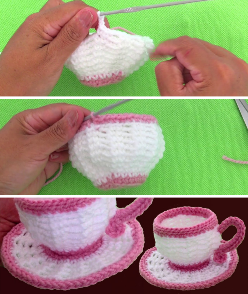 - Final Handle Edge: Finally, work a border of Slip Stitches around the entire handle (the new SC row and the small ring). This gives the handle the same firm, finished edge as the cup and saucer.