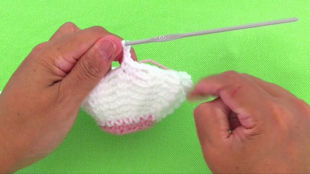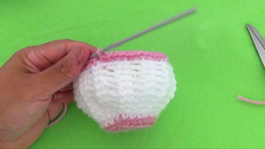 - The “Lace” Rounds (Creating Texture): We now work in a continuous spiral—do not slip stitch to join at the end of the rounds until instructed. This keeps the seam invisible.