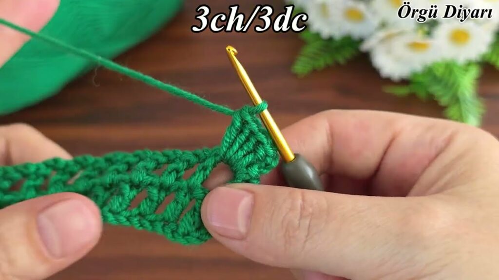 - Into the next stitch: DC 3