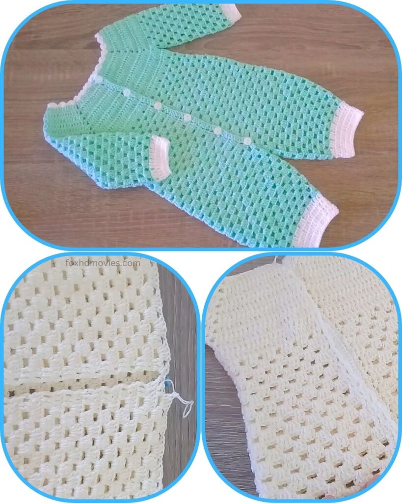 Wrap your little one in comfort and style with this delightful crochet sleepsuit! Inspired by the charming design in the picture, this pattern features a lovely lacy openwork body and sleeves, a cozy ribbed yoke, and contrasting white trim for a polished finish. With a convenient button-up front, it’s perfect for keeping baby snug and making diaper changes a breeze.