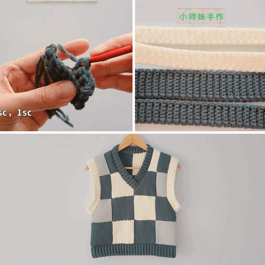 - Bottom Hem: Finish the bottom edge of the vest with a complementary edging, such as a few rounds of plain sc, a simple shell stitch border, or a picot edge.